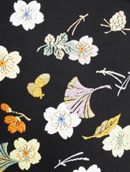 波の地紋のある生地に、桜や銀杏、紅葉、そして木の実などが色とりどりに唐織で織り出された上質な名古屋帯です。