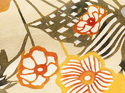 昭和の型絵染はあまりモチーフを断定できないように表現されているものが多く、それは特徴のひとつとも言えます。