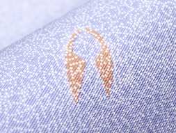 その小さな模様を繋ぐ様に一本の白い糸がくるくるとしたラインで描かれ、それが全体をひとつのリズムの中に溶け込ませている様に見えます。